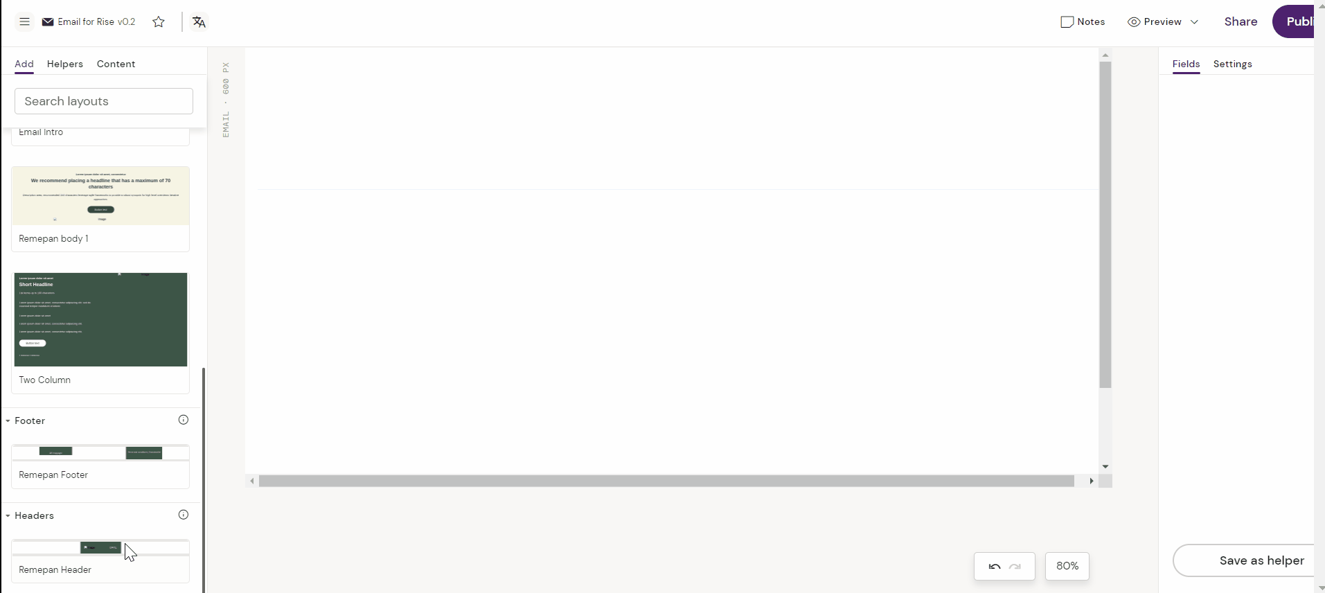 Layouts can be created by Designers and reused by anyone. They are tied to a Design System file, and the specific document type it was created for. This means that a layout created for a Approved Emails can be reused across Approved Emails created in the same Design System - but it can not be used for Slides or Briefs.