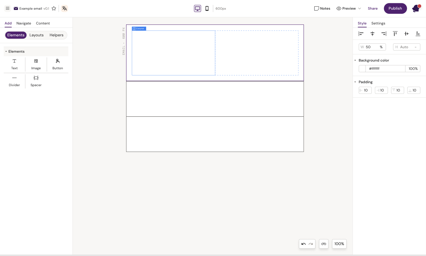 This is the first component you start with and an email usually consist of multiple rows stacked horizontally. The only two container components you can insert into a Row container is Column and Group.