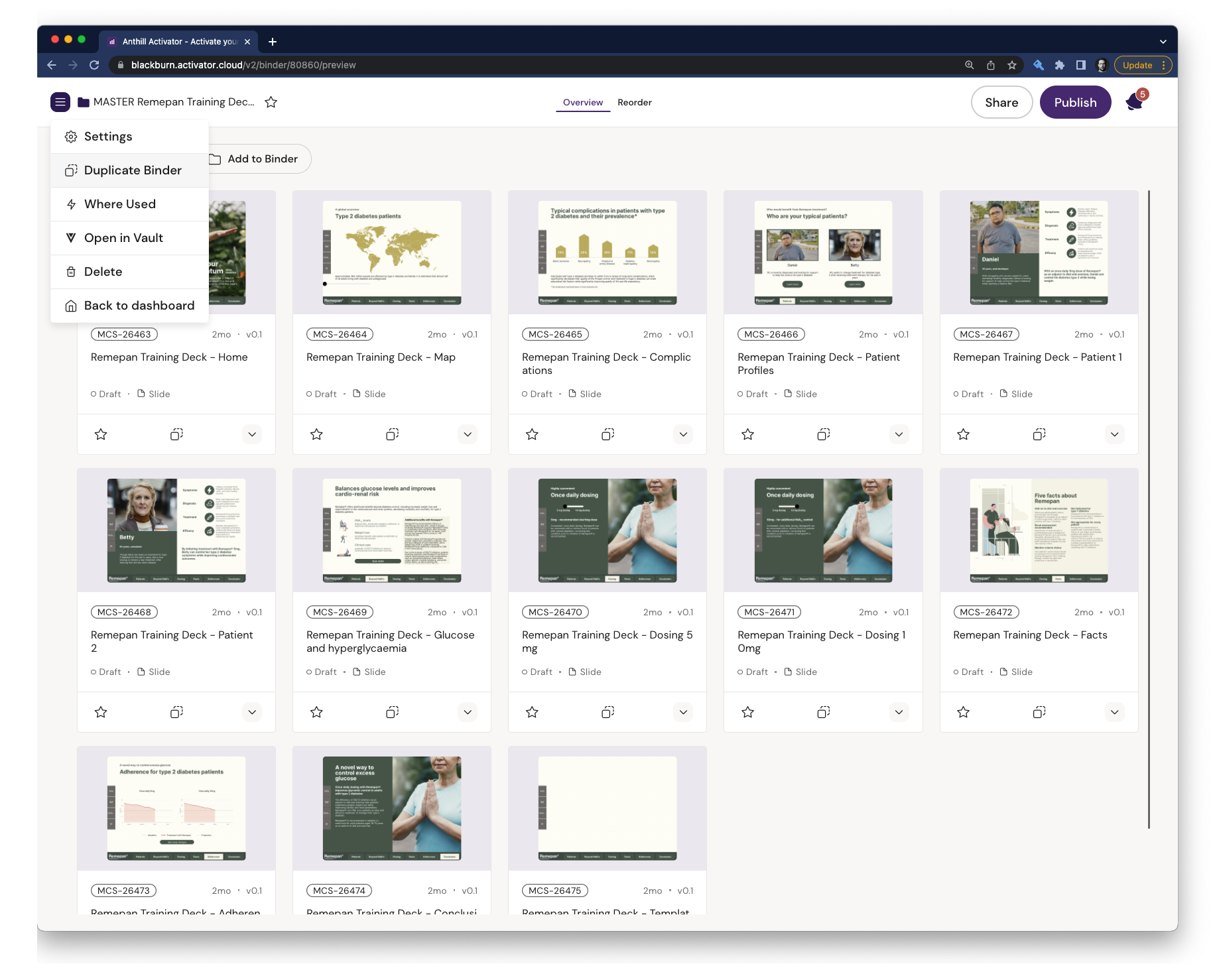 Click Duplicate. Once the Binder and its content have been copied and loaded, you can start editing it where needed.