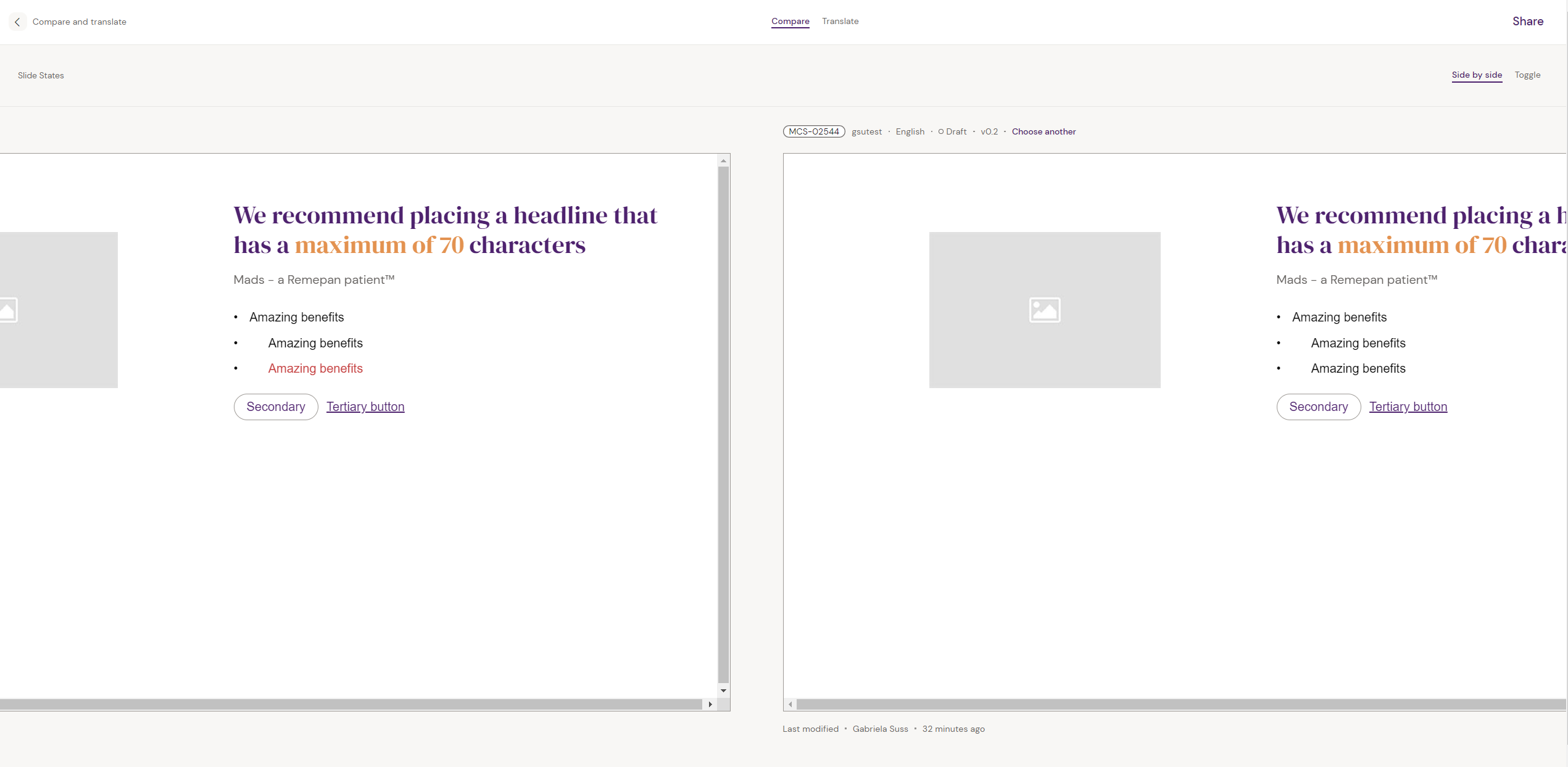 Doing so will open a new overlay called 'Compared and Translate' that compares the two slides side by side.