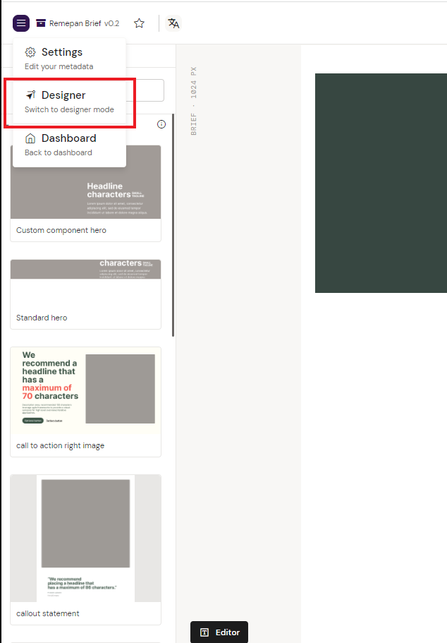 Your Layout is now available in the Editor and Designer and can be reused across the Design System for the specific content type is was created for (Brief, Email or Presentation)