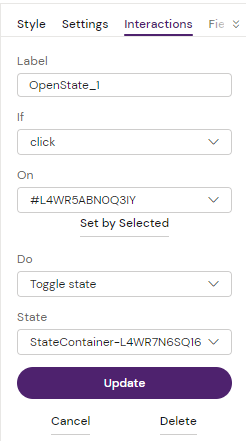 Apply state - select an available state to apply, e.g. open a popup