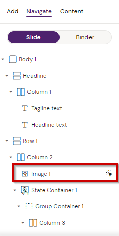 Navigate - select binder and slide to navigate to