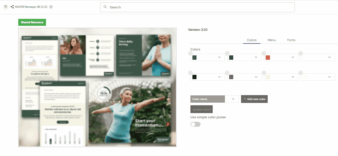 This menu is configured from the Shared resource menu