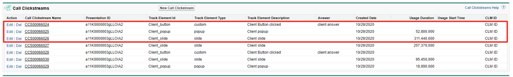 In salesforce we have a Call Clickstreams block for each slide, where all custom monitoring that was submitted from slide will be displayed: