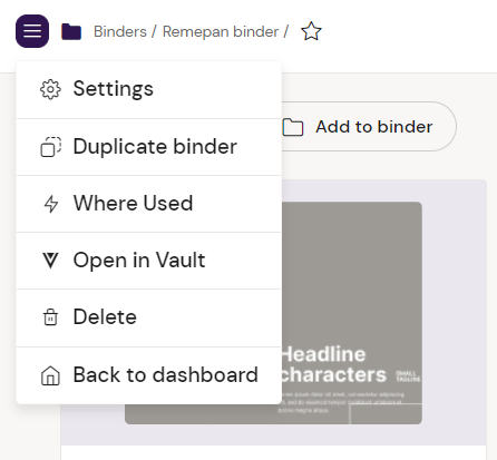 Note: Since Binders aren’t actual content, but rather a way to organize your content, you cannot open Binders in the Activator Editor. You can still duplicate Binders from their content cards, or when you open a Binder to view its content, you can click the Burger menu and select ‘Duplicate binder’ to access the Duplication options for your binder.