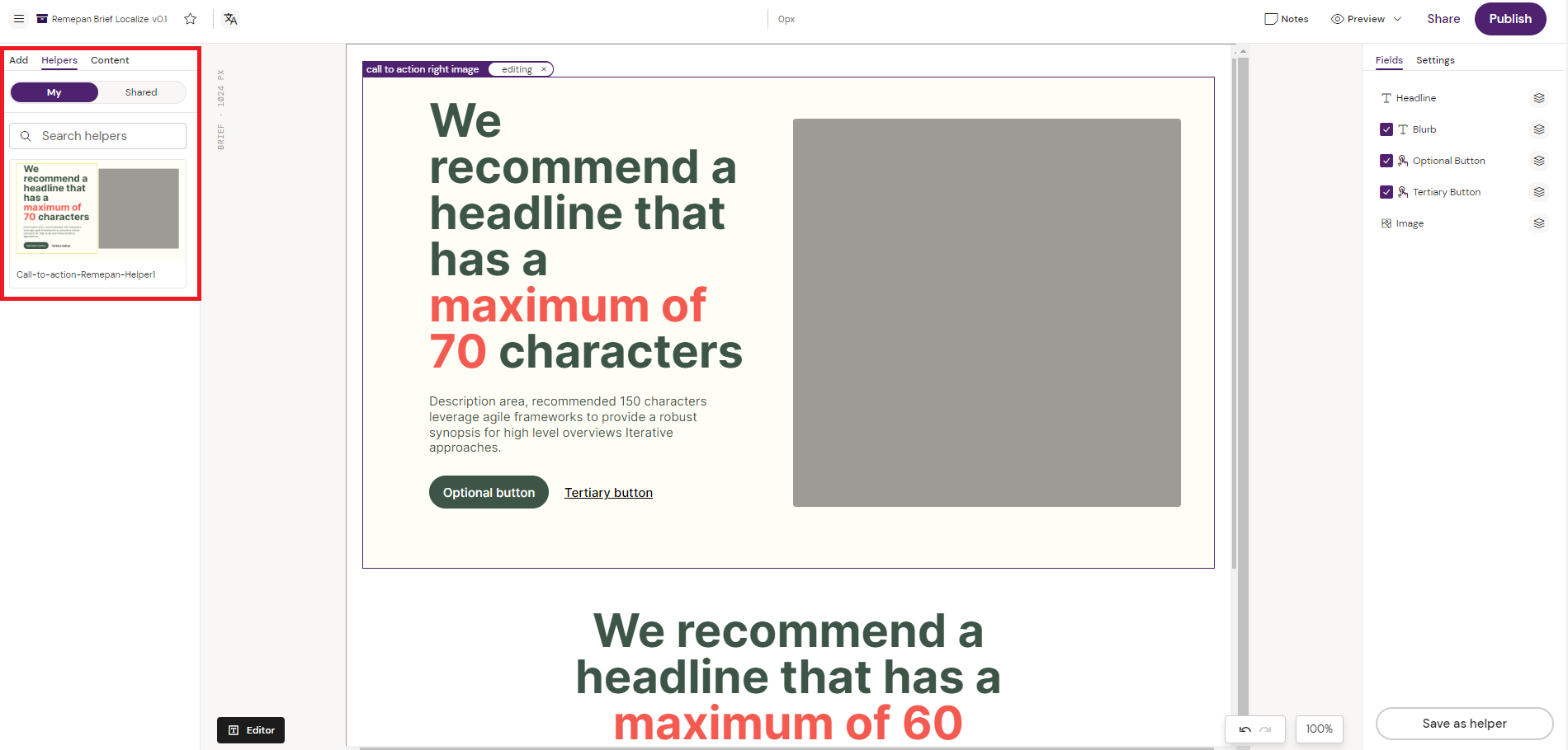 Helpers are essentially layouts that you can personalize and save. This might be helpful when you find yourself using a certain combination of content often or in different formats.
