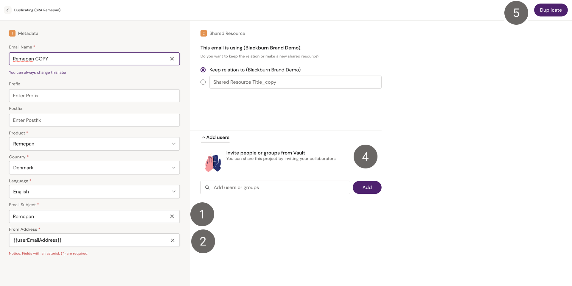 Rename the email if needed and select the meta data which should be applied to your copy of the email.