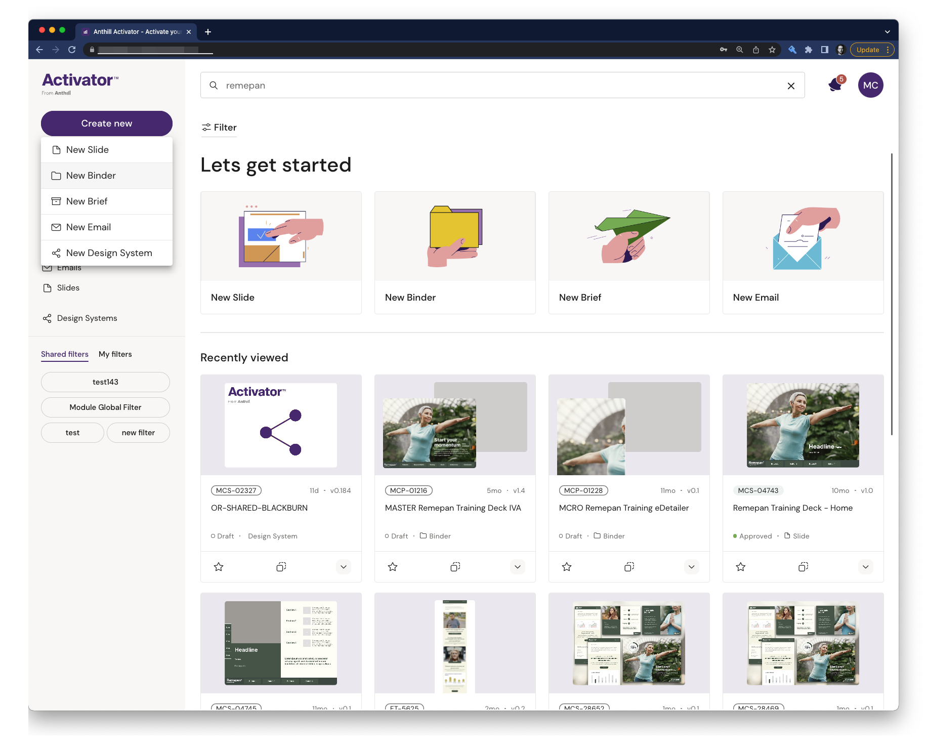 There are a few ways you can start creating a new Presentation (Binder). However, the first step is to always have a Binder so that you can start collecting your Slides to create a Presentation.