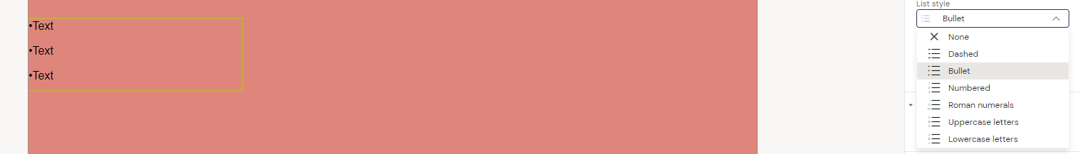 The bullet styles we do support are available in the Style menu, under List Style: