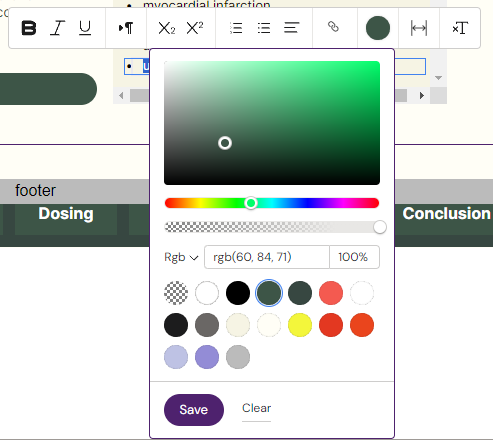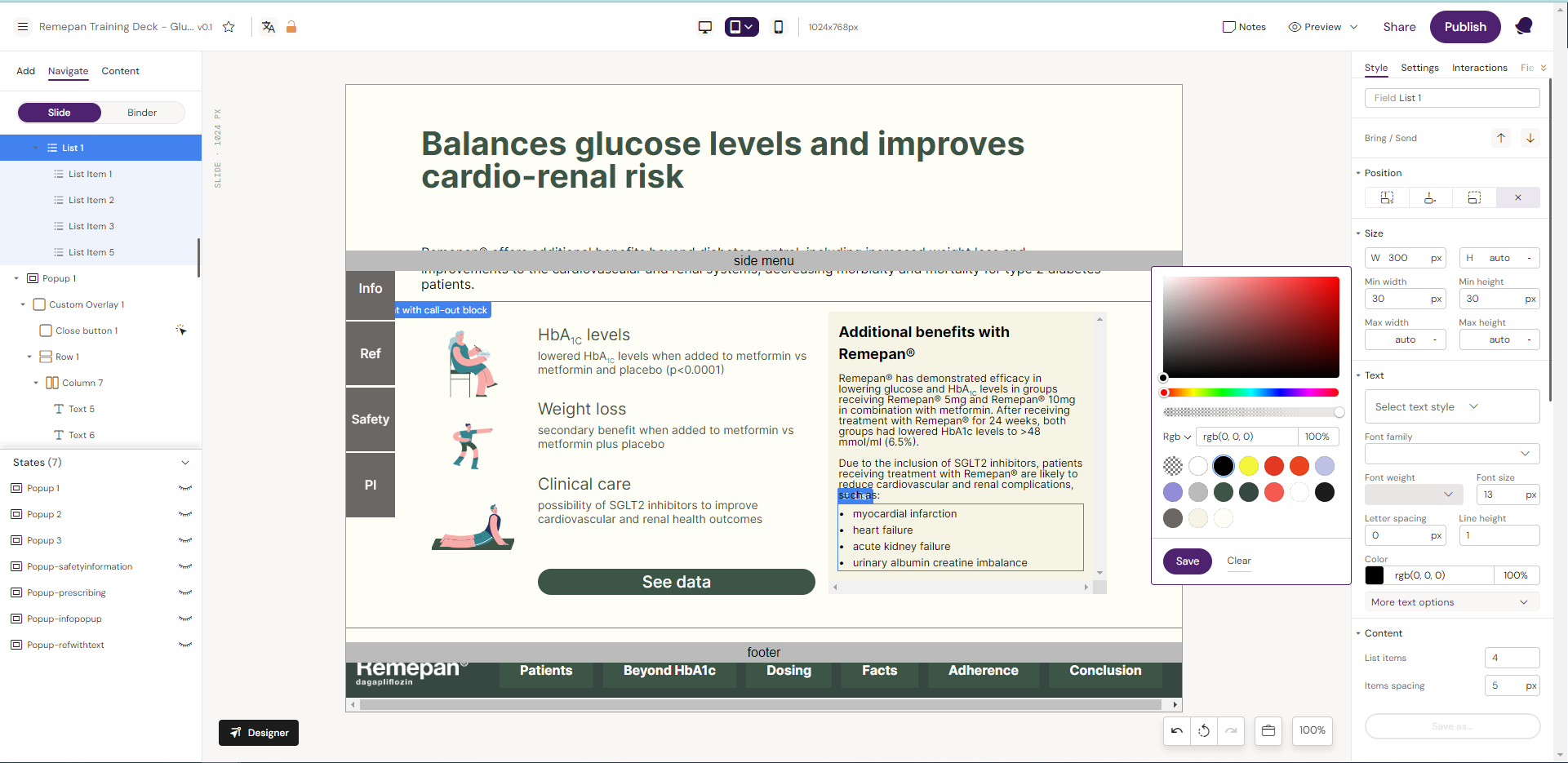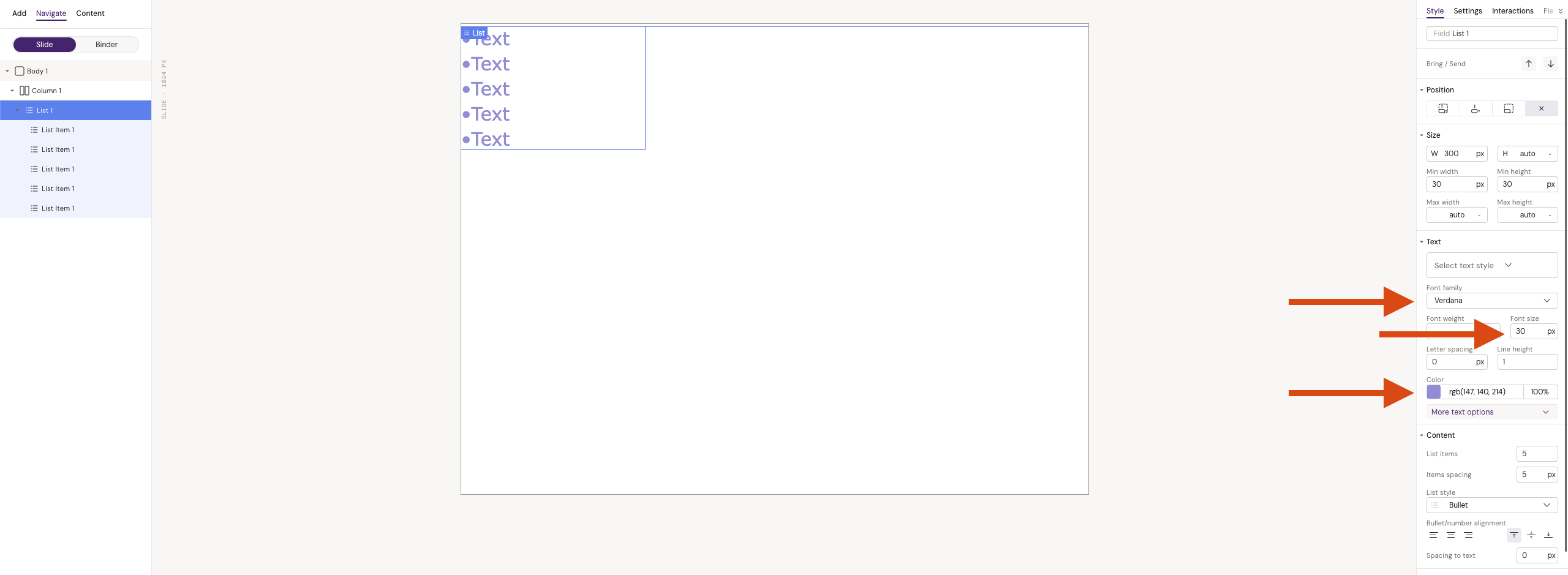 Double-click on the list item and change the text color using the color editor. Click Save.