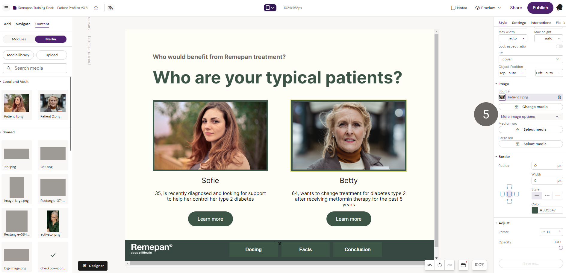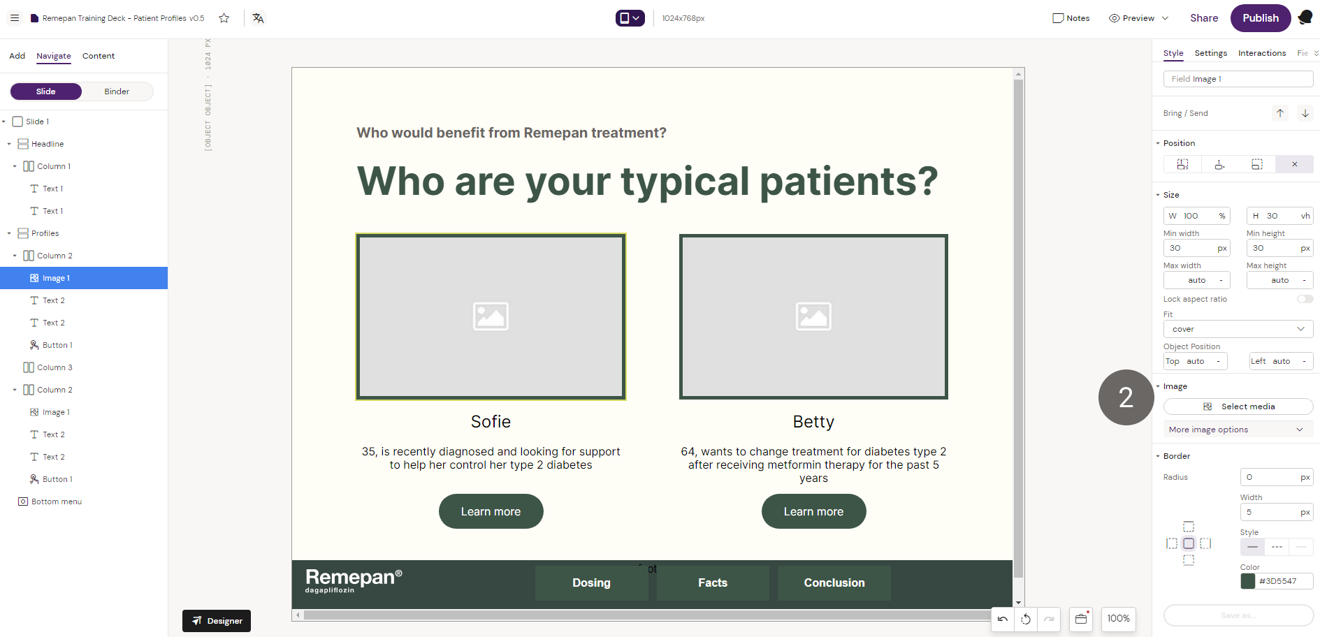 In this example we will add two images in a call to action layout that shows two individual patient profiles.