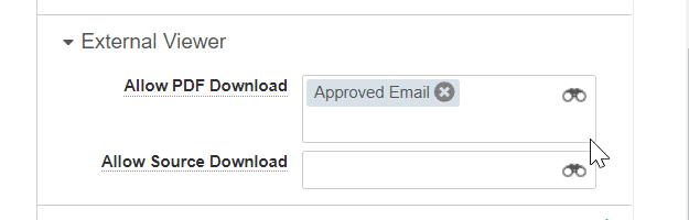 Set the External Viewer to allow PDF download for Approved Email