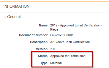 The document must be categorized as "Material" and has to be "Approved for Distribution".
