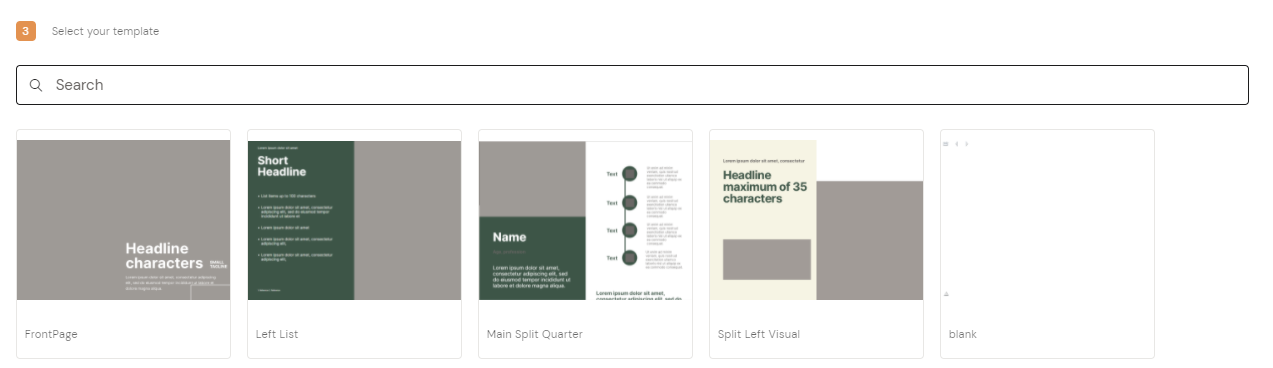 A Design System can be created with pre-defined templates. A template will typically contain some guiding placeholders for your content, such as columns meant for text and pictures. A template can be predesigned to a certain degree with background, logos and dummy text such as the popular “lorem ipsum”.