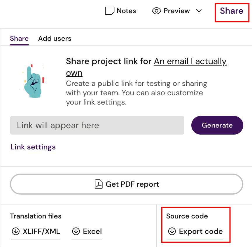 First we need to download the source code from Activator and this can be done via the ‘Share’ menu in editor and designer.