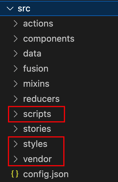 Scripts and styles folders are intended for code that you write, and vendor folder is intended for third-party libraries.
