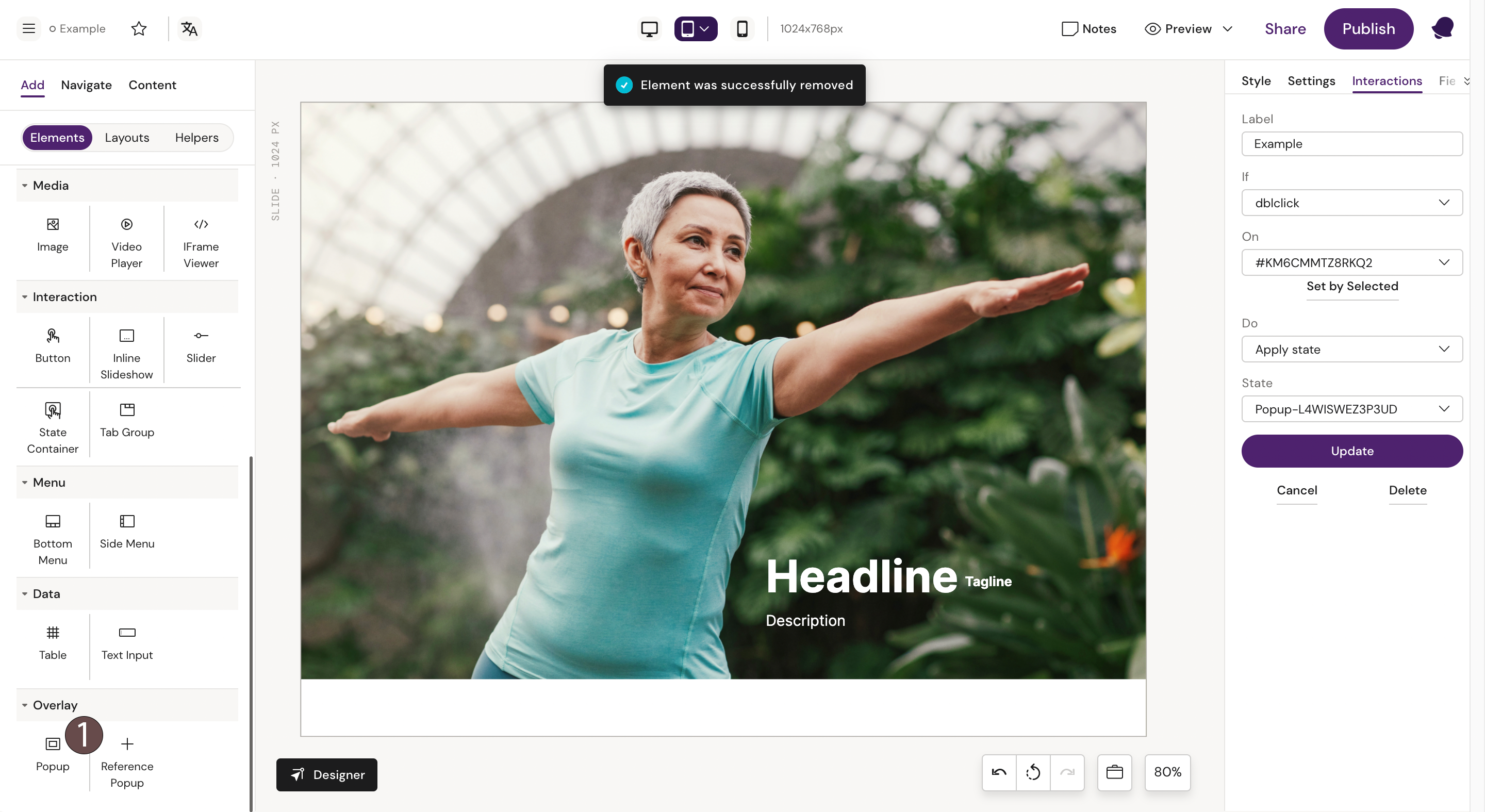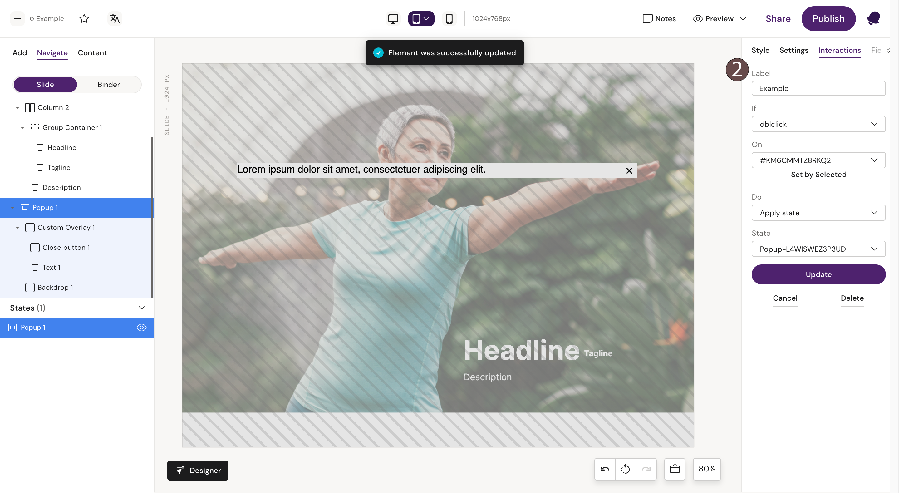 Step 2: Fill the Popup container with text or picture and add an interaction to it.