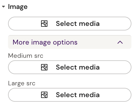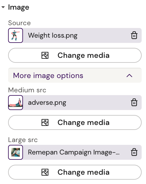 The image component in Activator support multiple sources in the ‘More image options’ section.