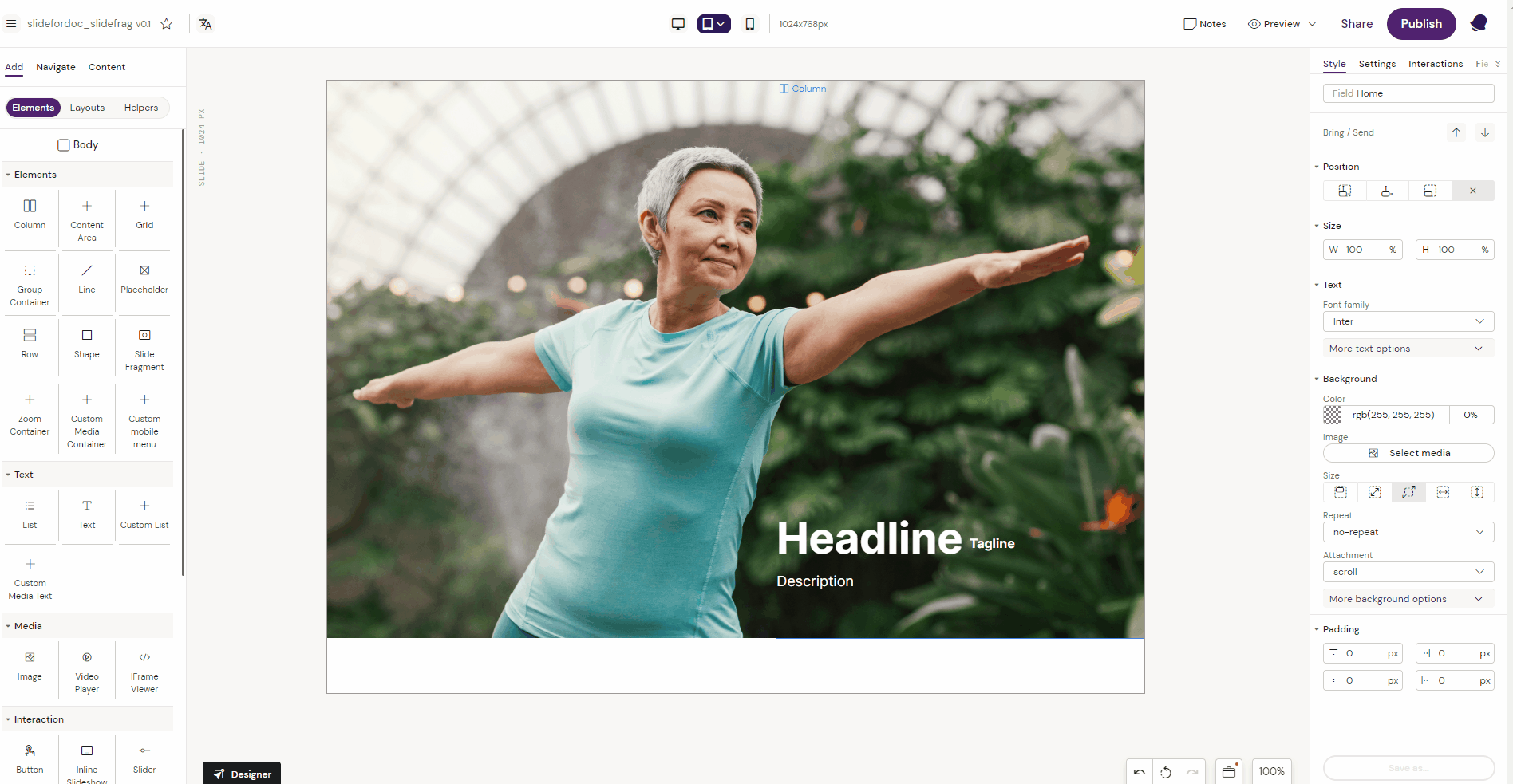 Position the Slide Fragment as required by changing the position if needed