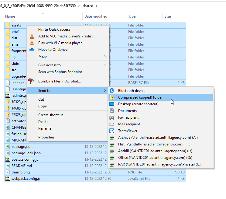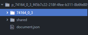 The now unzipped folder contains 2 folders - the first folder is the document you just created with the ID number as its name and the design system named “shared.”