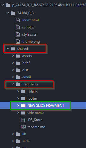 Open the folder “shared” and create a new folder inside the fragments folder with the name the fragment should have.