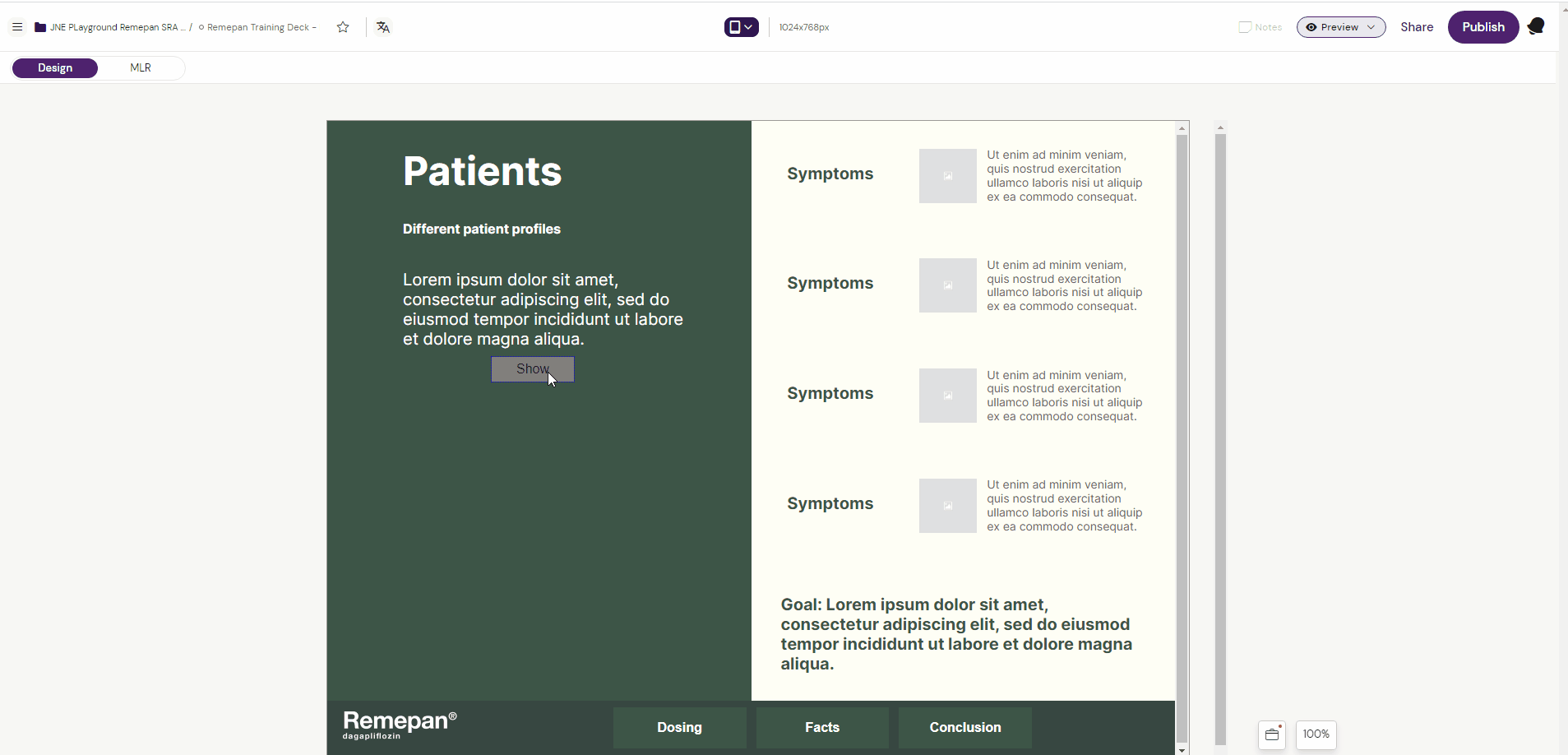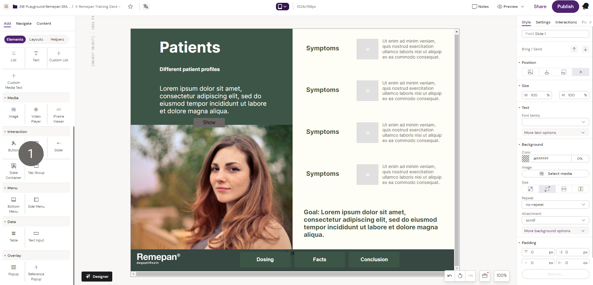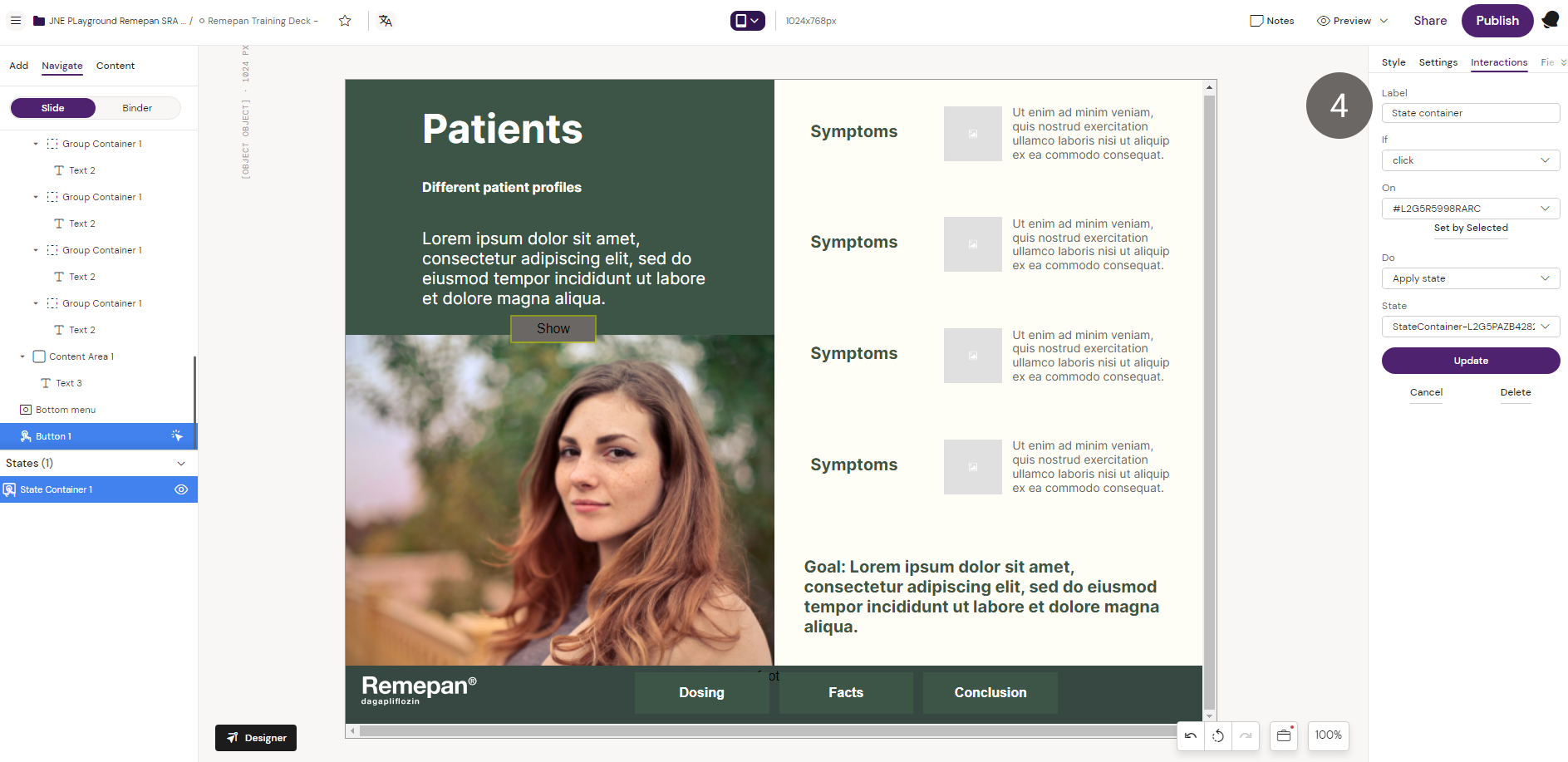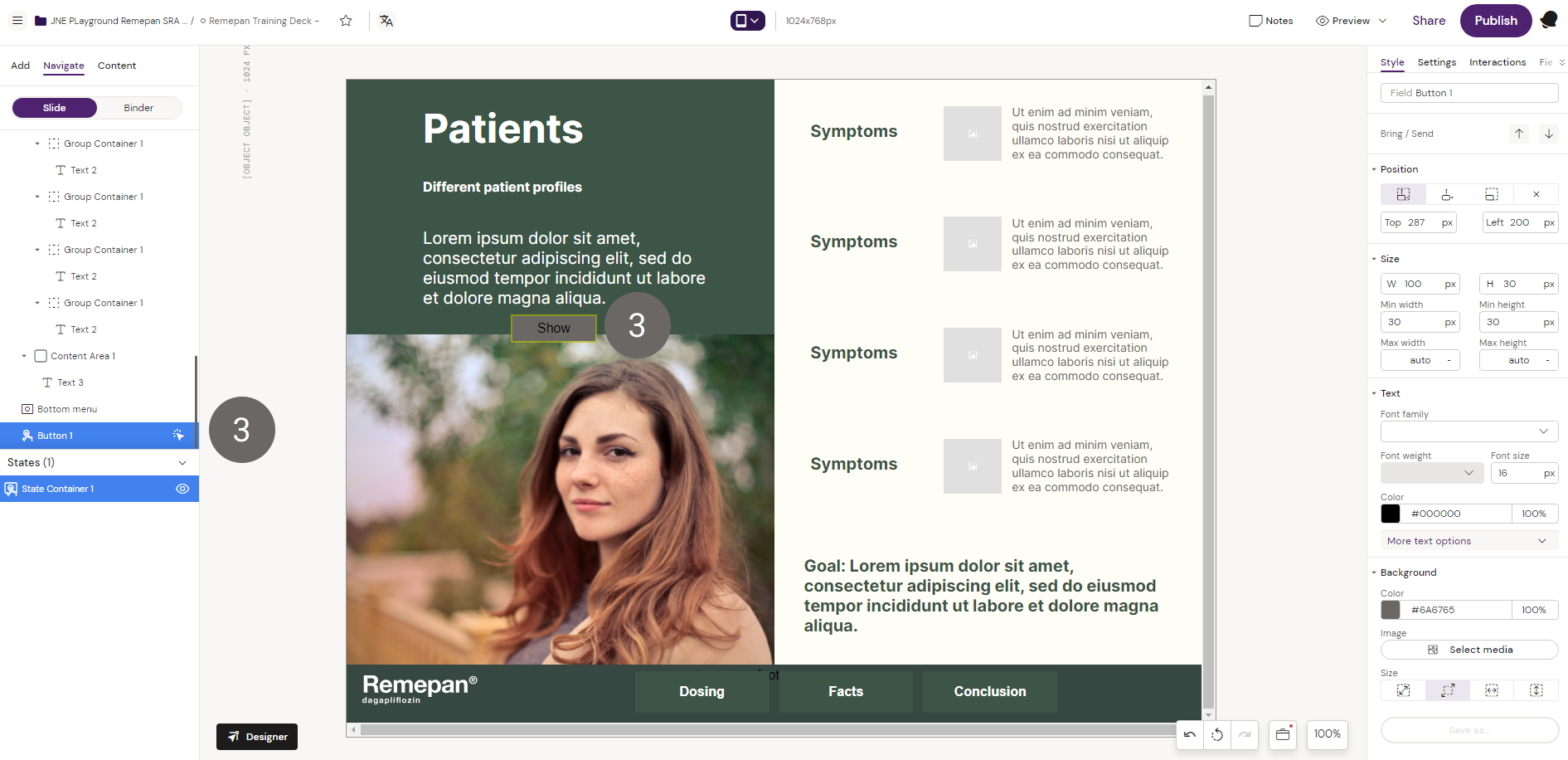 3. Unselect the state container and select the “Button” component from the components list to place a button outside the state container on the slide.