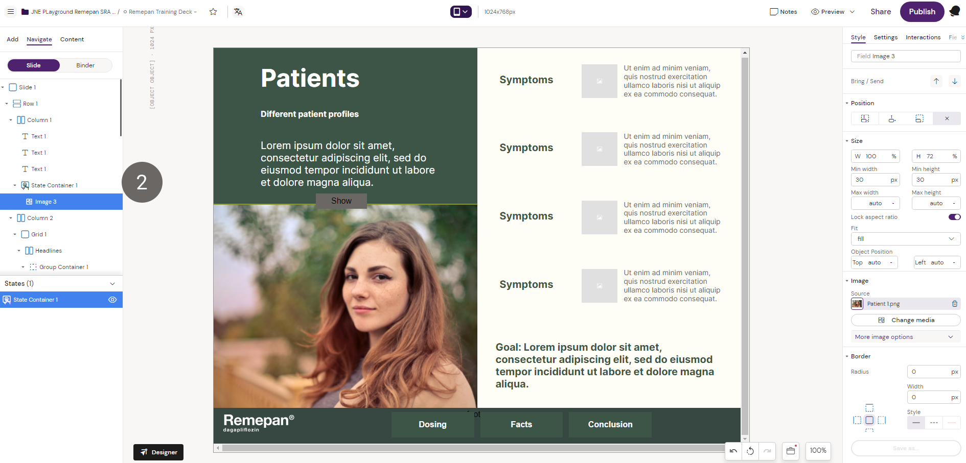 2. With the state container active, select the “Image” component from the components list to place an image inside the state container.
