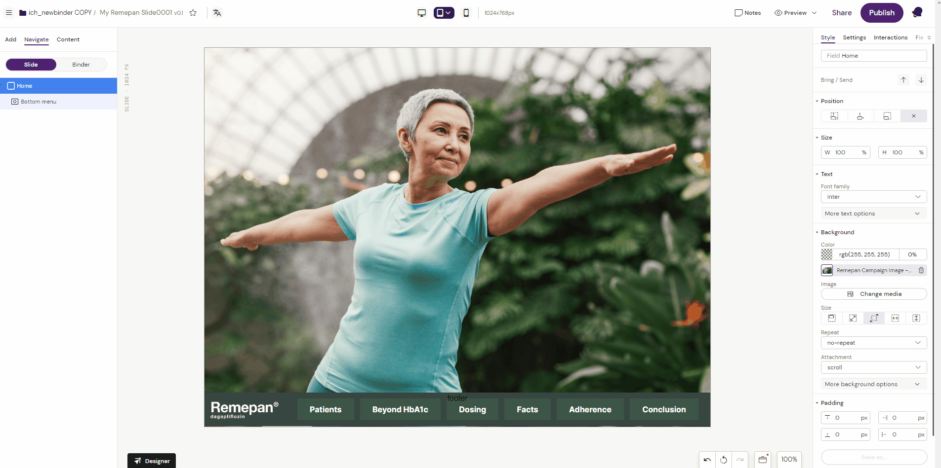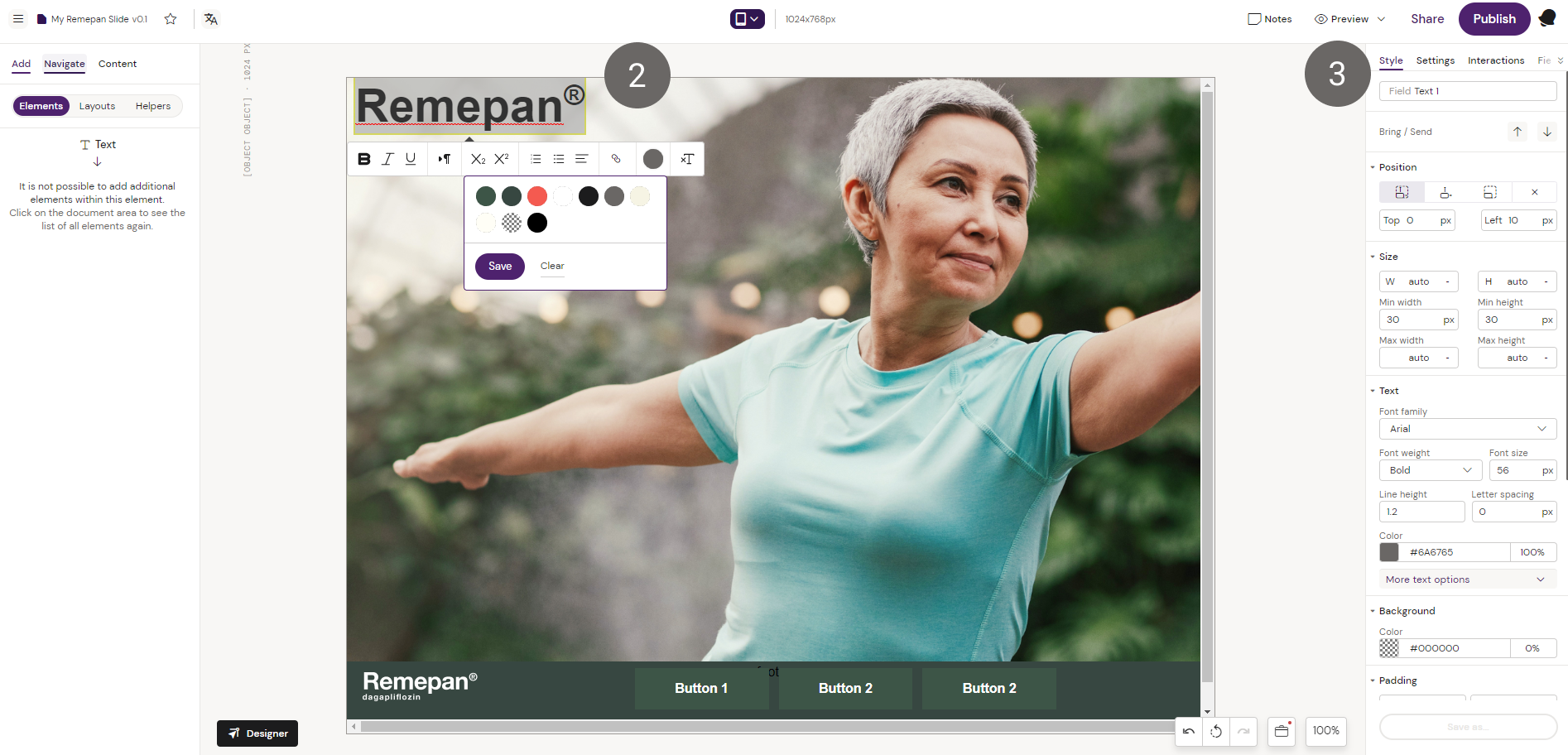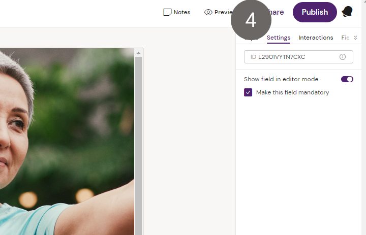 4. Configure the text to be editable or mandatory in the editor in the settings tab