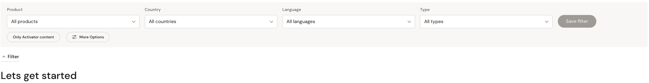 As an Activator user you also have the option to use the filter to narrow down the documents shown in the ‘recently viewed’ section. You can also save filters.