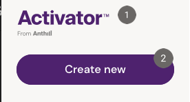 At the top, the user finds the Activator Logo and the ‘create new’ button.