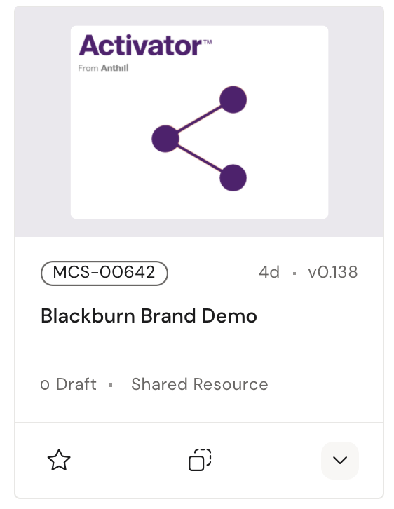 A Shared Resource is a document shared across one or more presentations. It stores the settings, templates, fonts and common media used to create Slides, Emails or Briefs in Activator.