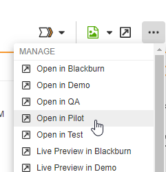 The Design System can be opened in Activator by going to the Action menu - your options may vary, but in the example, we open the Design System up in our Pilot environment: