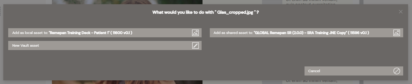 Step 3: You will now be prompted with a popup that requires you to decided if the asset should be added to as a