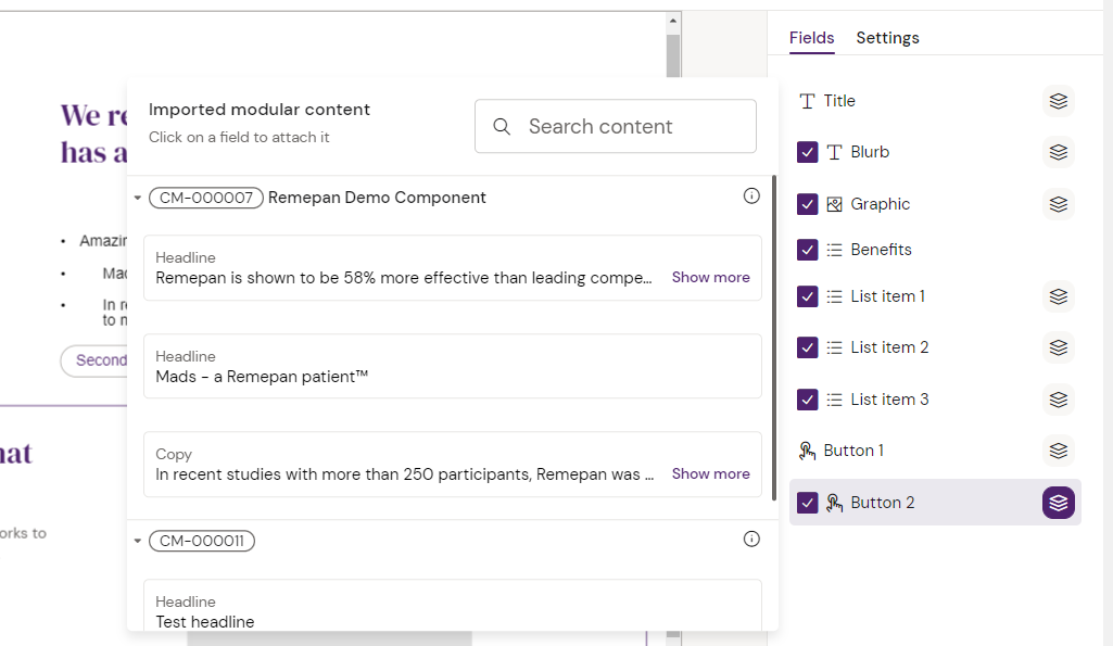 Visit our Modular Content section to learn about importing, linking and previewing Modular Content in depth.