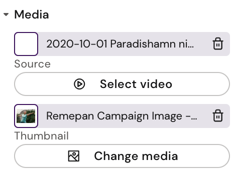 Note: in 2.1.2 and below, there is a bug that show the video controls even if the toggle is ‘false’ from the beginning. To remove the controls, toggle the ‘Show controls’ back and forth (so it ends at ‘false’ again).